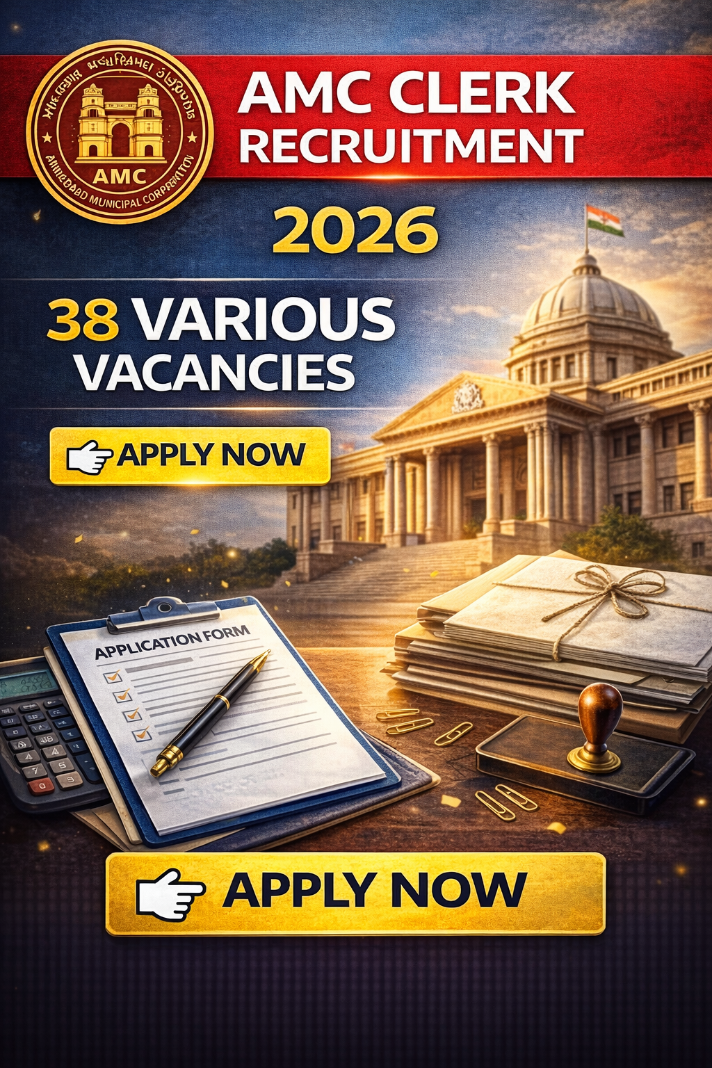 AMC Clerk Online Form 2026: The Ahmedabad Municipal Corporation has published the recruitment notification (Advt No. 28/2024-25) on its official website. https://www.ahmedabadcity.gov.in/ The notification is for the recruitment of 38 Assistant Manager, Office Superintendent, Head Clerk, Junior Clerk posts. The last date to apply for these vacancies is 27/02/2026. Candidates who have Graduate, MBA, PGDBM, CA qualifications can apply Apply Online for AMC Clerk Recruitment 2026. Interested candidates must read the official notification carefully and complete the application process as per the given instructions. The official website link and the AMC Clerk Recruitment 2026 notification link are provided below under the heading Important Links.
