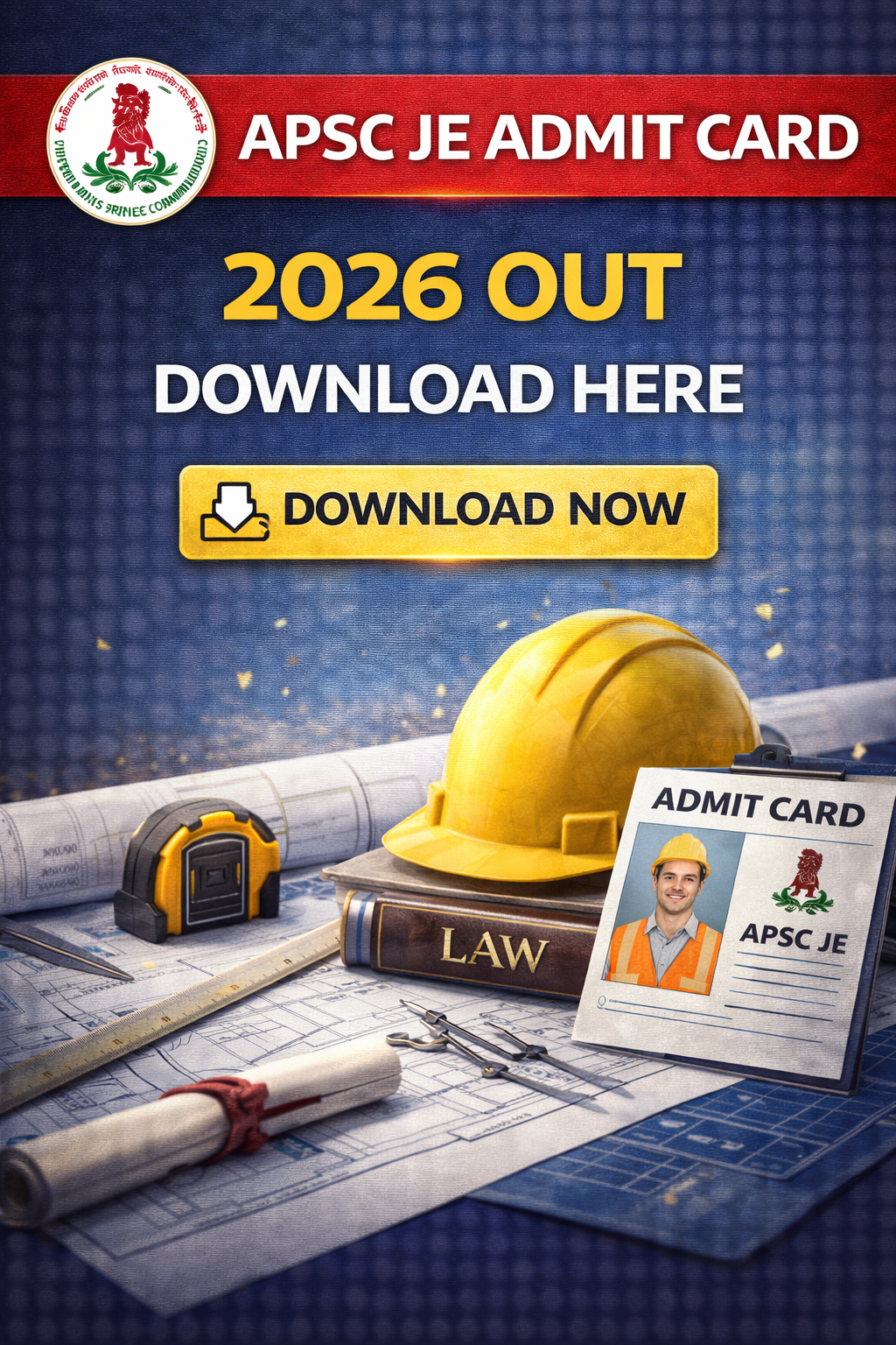 Download APSC JE Admit Card 2026 released on 16 February 2026 at apsc.nic.in or apscrecruitment.in. Exam on 22 February 2026. Get direct link info, steps & exam details.