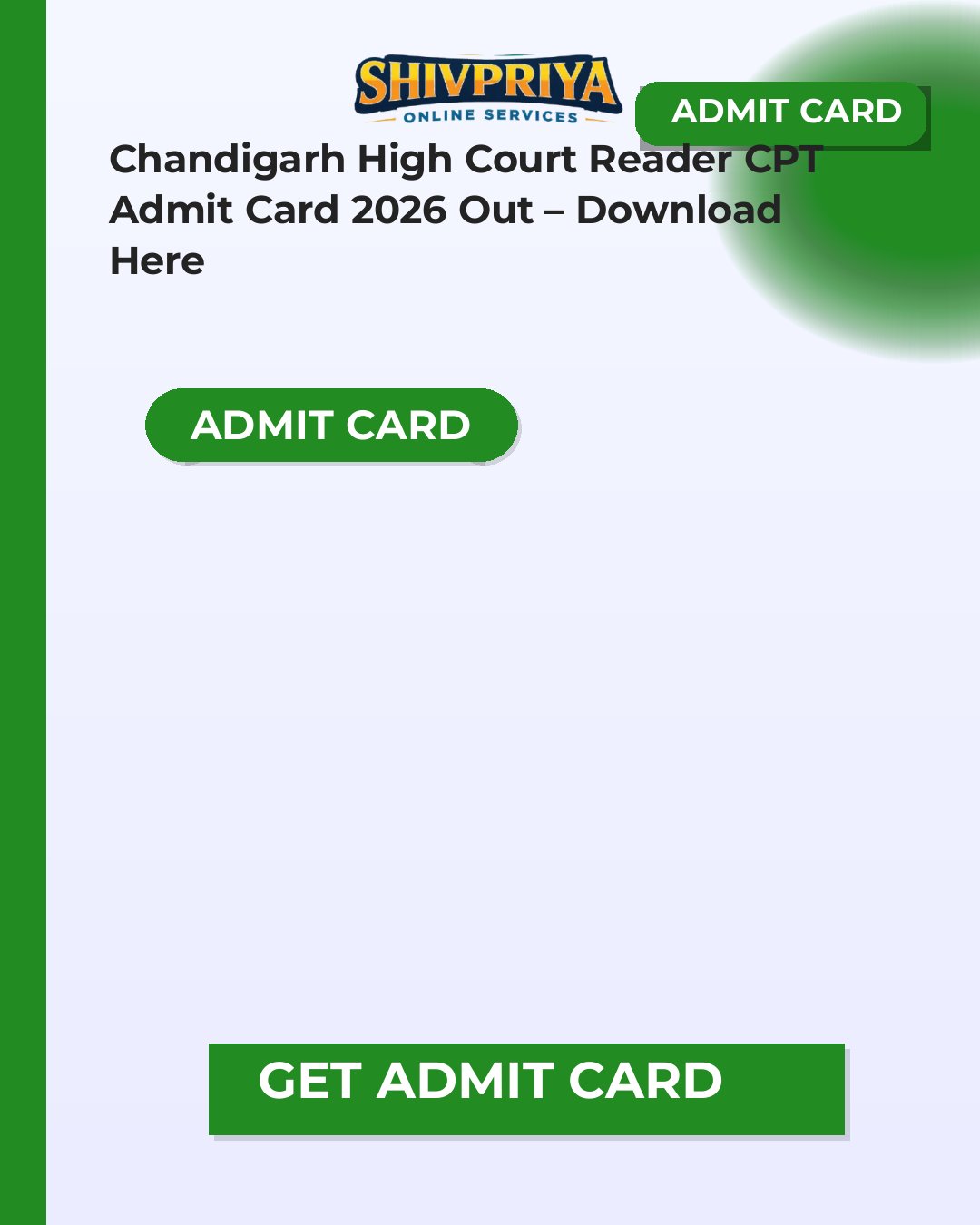 Download Chandigarh High Court Reader CPT Admit Card 2026 from 23 February 2026 at highcourtchd.gov.in. CPT exam on 08 March 2026. Get direct link info, steps & exam details.