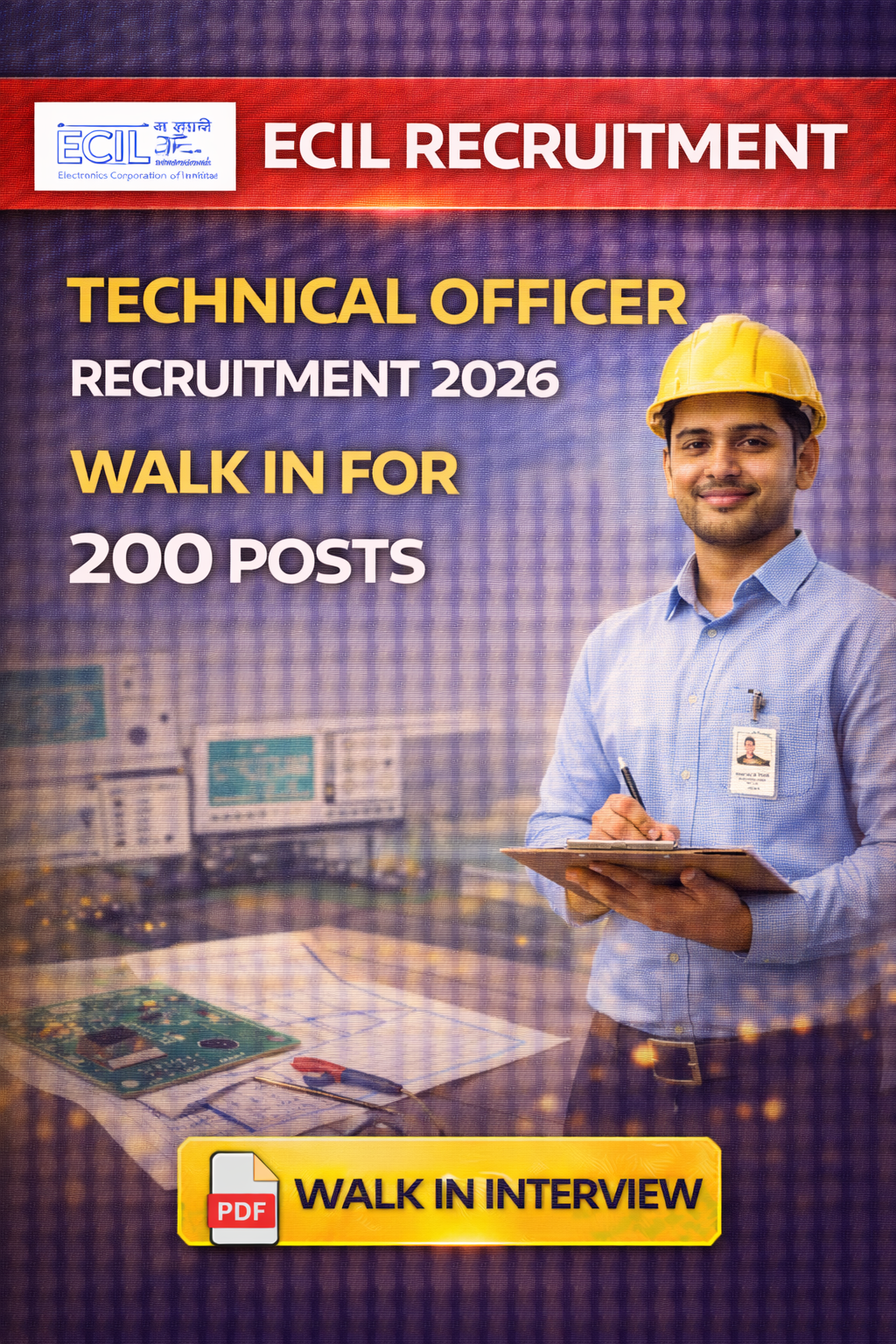 Electronics Corporation of India (ECIL) Recruitment 2026 for 200 posts of Technical Officer. Candidates with B.Tech/B.E Can attend the walkin. The Walk-in interview on 24-02-2026. For detailed information please visit ECIL official website, ecil.co.in.
