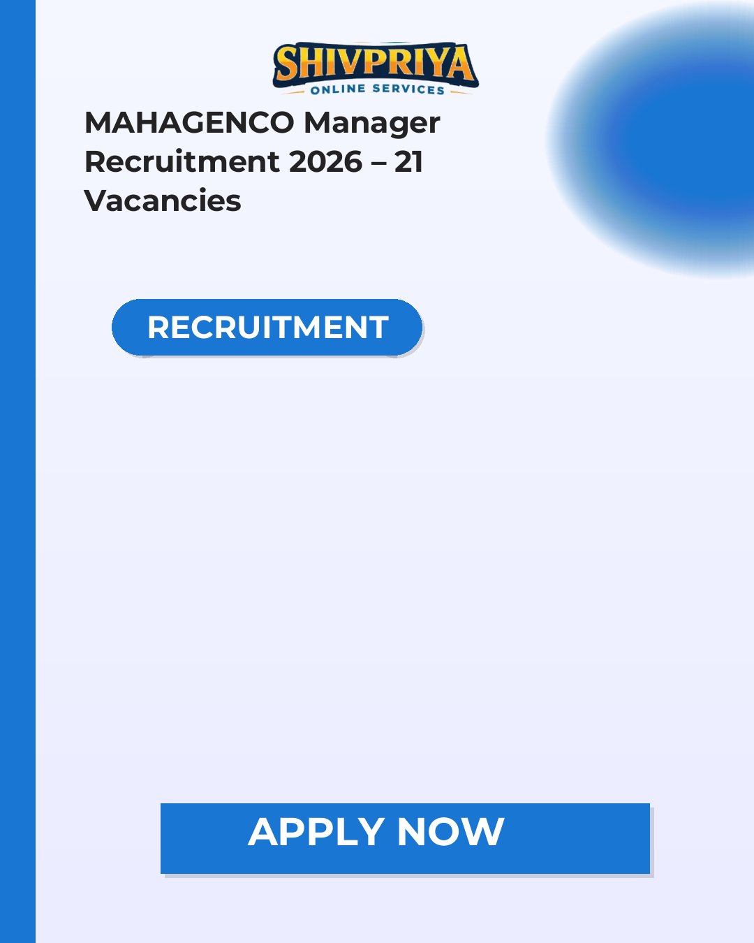 MAHAGENCO Manager Online Form 2026: The Maharashtra State Power Generation Company Ltd. has published the recruitment notification (Advt No. 03/2026) on its official website. https://www.mahagenco.in The notification is for the recruitment of 21 General Manager, AGM, Sr Manager, Dy Manager, Manager posts. The last date to apply for these vacancies is 20/03/2026. Candidates who have CA / ICWA final passed or MBA/M.Com qualifications can apply Apply Online for MAHAGENCO Manager Recruitment 2026. Interested candidates must read the official notification carefully and complete the application process as per the given instructions. The official website link and the MAHAGENCO Manager Recruitment 2026 notification link are provided below under the heading Important Links.