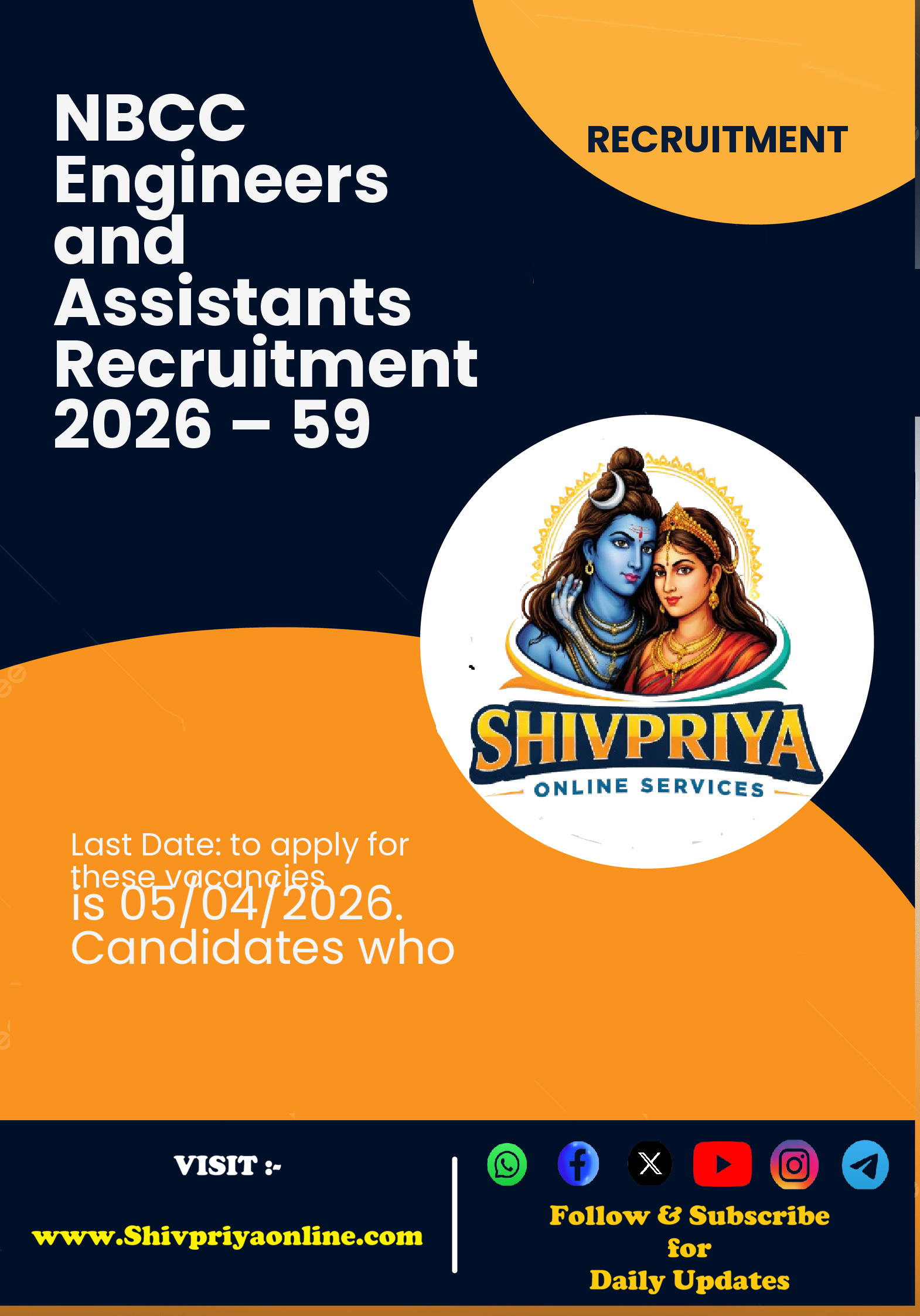NBCC JE and Assistant Recruitment Online Form 2026: The NBCC (India) Limited has published the recruitment notification (Advt No. 01/2026) on its official website. https://nbccindia.in/ The notification is for the recruitment of 59 JE, Assistants posts. The last date to apply for these vacancies is 05/04/2026. Candidates who have Degree, Diploma, PG Degree, Company Secretary , MBA qualifications can apply Apply Online for NBCC JE and Assistant Recruitment 2026. Interested candidates must read the official notification carefully and complete the application process as per the given instructions. The official website link and the NBCC JE and Assistant Recruitment 2026 notification link are provided below under the heading Important Links.