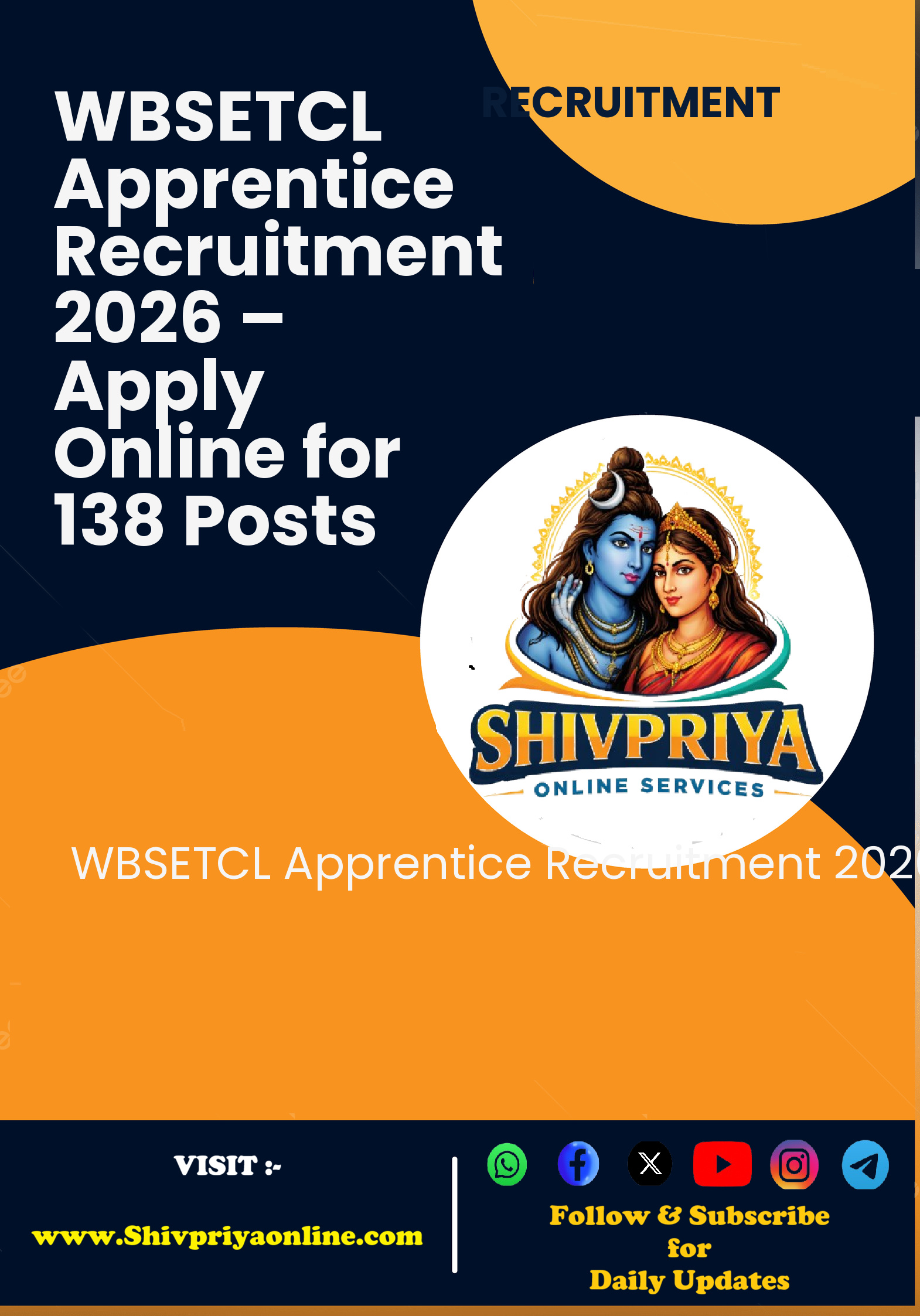 WBSETCL Recruitment 2026 for 138 Graduate Apprentice (Electrical), Technician Apprentice (Diploma/ITI) posts. Candidates with ITI, Diploma, B.E/B.Tech Can Apply Online. The online application opens on 06-02-2026, and closes on 27-02-2026. Eligible & Interested candidates can apply online via NATS/NAPS portals.
